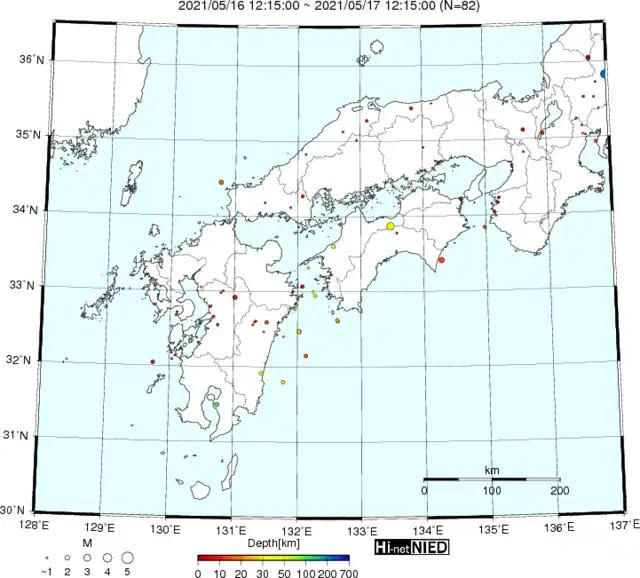 ●Hi-net日本地震分布と気象庁・・・hi-netの小笠原のデータは掲載日がずれて反映されるようです(翌々日に掲載)。掲載されないものもあるようなので気象庁の画像も付けます