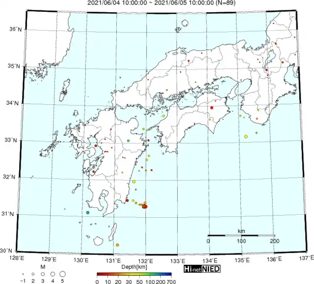 ●Hi-net日本地震分布と気象庁・・・hi-netの小笠原のデータは掲載日がずれて反映されるようです(翌々日に掲載)。掲載されないものもあるようなので気象庁の画像も付けます
