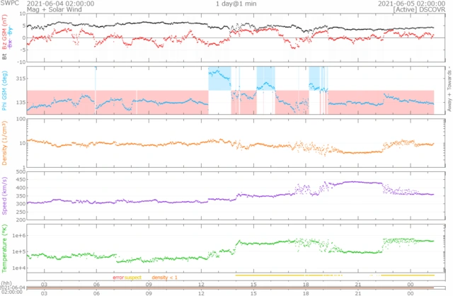 310km/s前後推移していましたが徐々に上がり、一時370km/sくらいで推移しました。現在は360km/s前後で推移しています