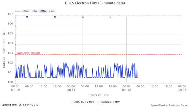 現時点で地球正面の黒点群はありません。←黒点番号が振られていない活動領域でもフレアは発生しますので、あくまで目安として捉えてください。