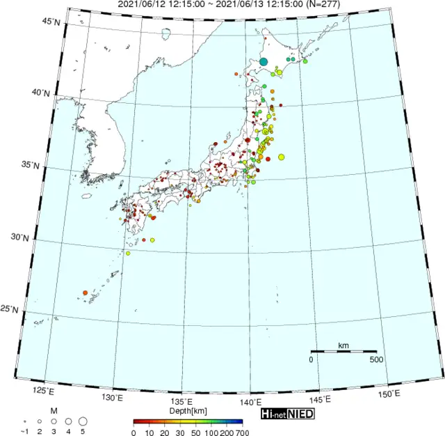 ●Hi-net日本地震分布と気象庁・・・hi-netの小笠原のデータは掲載日がずれて反映されるようです(翌々日に掲載)。掲載されないものもあるようなので気象庁の画像も付けます