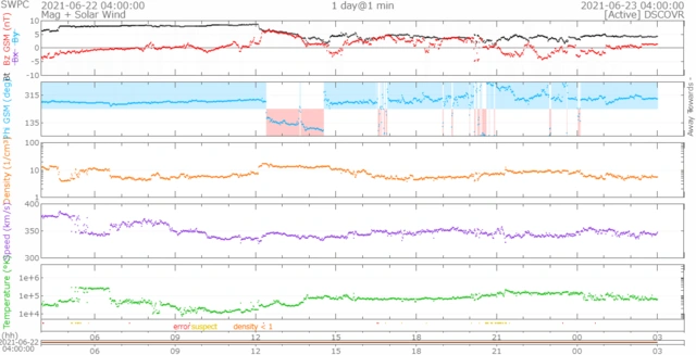 380km/s前後で推移していましたが徐々に下がり、現在は340km/s前後で推移しています