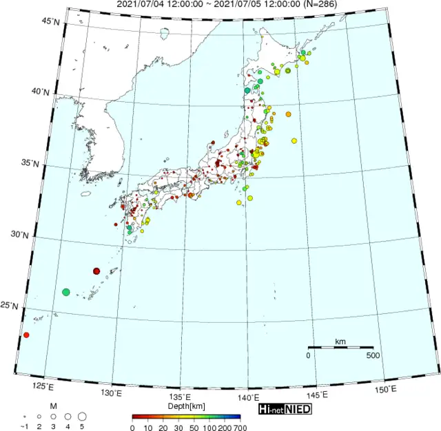 ●Hi-net日本地震分布と気象庁・・・hi-netの小笠原のデータは掲載日がずれて反映されるようです(翌々日に掲載)。掲載されないものもあるようなので気象庁の画像も付けます