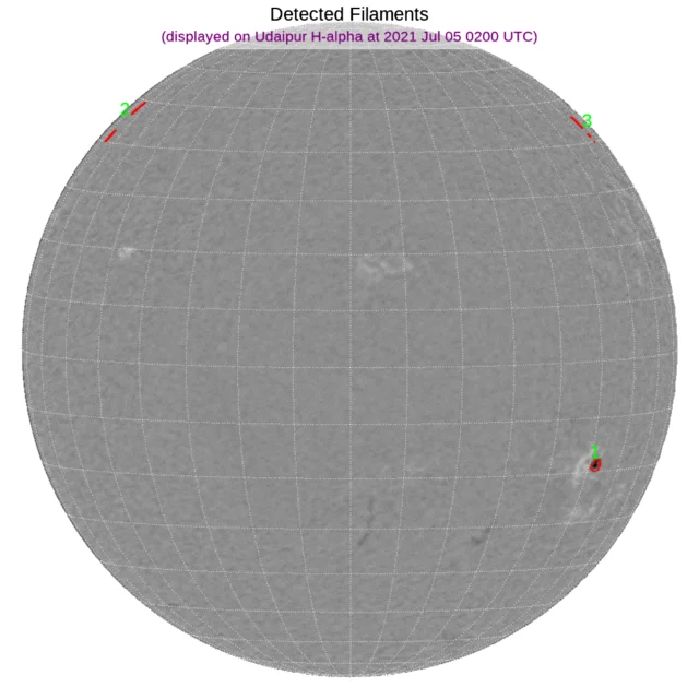 ※フィラメント:北半球東端と西端、南半球西端に小さなフィラメントがあります
