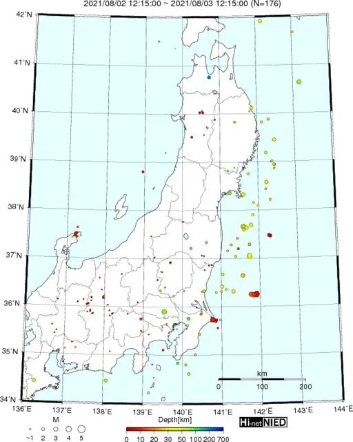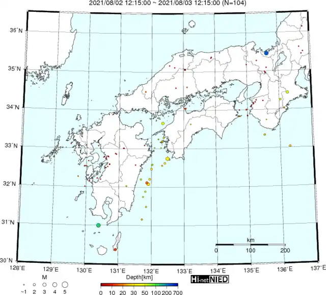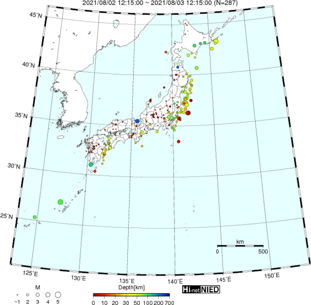 ●Hi-net日本地震分布と気象庁・・・hi-netの小笠原のデータは掲載日がずれて反映されるようです(翌々日に掲載)。掲載されないものもあるようなので気象庁の画像も付けます
