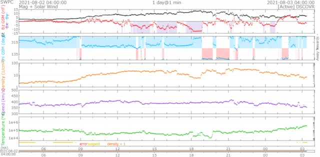 一時410km/s前後で推移していましたが、現在350km/s前後で推移しています