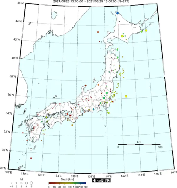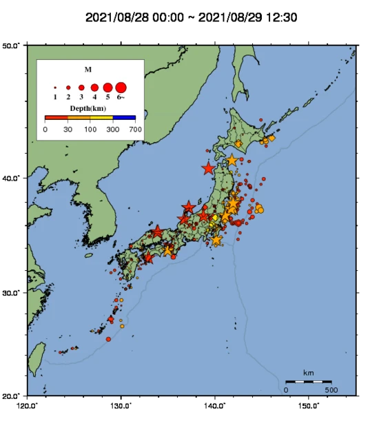 ●Hi-net日本地震分布と気象庁・・・hi-netの小笠原のデータは掲載日がずれて反映されるようです(翌々日に掲載)。掲載されないものもあるようなので気象庁の画像も付けます