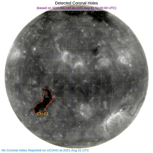 現時点で地球正面の黒点群はありません。←黒点番号が振られていない活動領域でもフレアは発生しますので、あくまで目安として捉えてください。