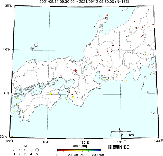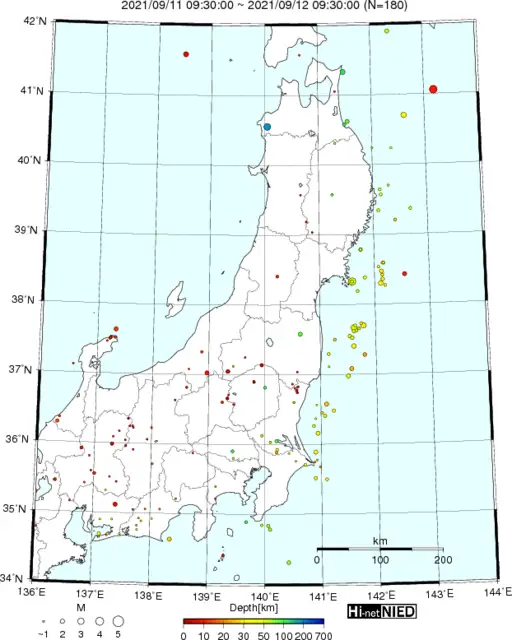 ●Hi-net日本地震分布と気象庁・・・hi-netの小笠原のデータは掲載日がずれて反映されるようです(翌々日に掲載)。掲載されないものもあるようなので気象庁の画像も付けます