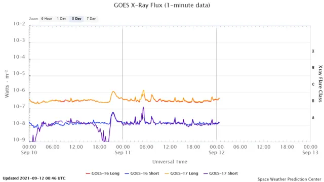 spaceweather.comのMクラスフレア予測は20%のままですが、Xクラスの予想も5%のままです