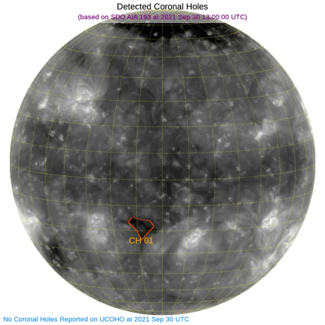 南半球東寄りに小さなコロナホールがあります