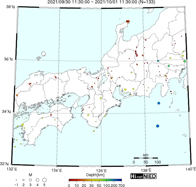 ●Hi-net日本地震分布と気象庁・・・hi-netの小笠原のデータは掲載日がずれて反映されるようです(翌々日に掲載)。掲載されないものもあるようなので気象庁の画像も付けます