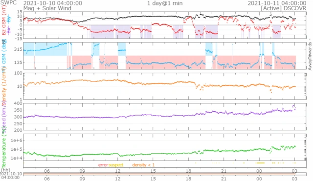 一時400km/sを超える突風があったようですが、引き続き300km/s前後で推移しています