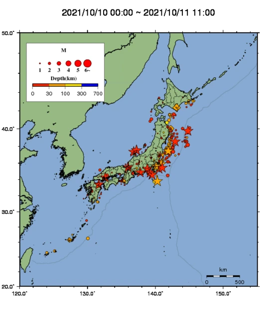●Hi-net日本地震分布と気象庁・・・hi-netの小笠原のデータは掲載日がずれて反映されるようです(翌々日に掲載)。掲載されないものもあるようなので気象庁の画像も付けます