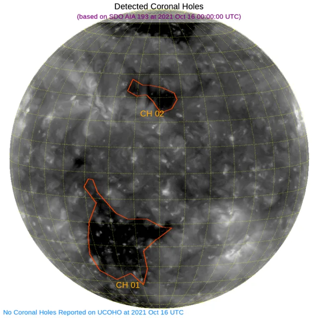 北半球中心付近と南半球東側に大き目なコロナホールがあります
