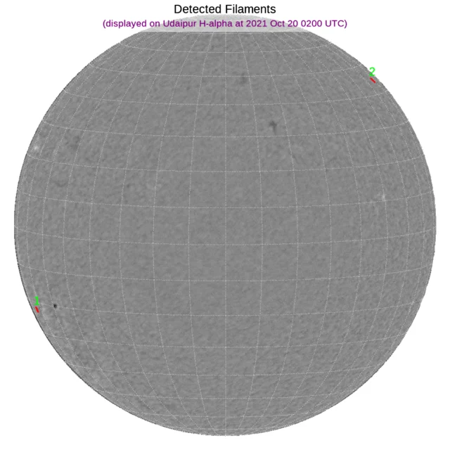 ※フィラメント:北半球西端と南半球東端に小さなフィラメントがあります