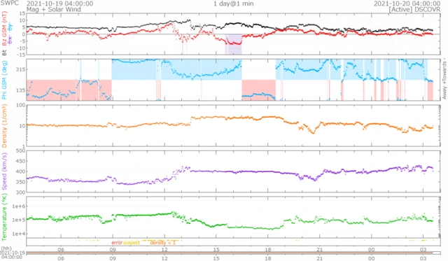 370km/s前後で推移していましたが少し上がり、現在420km/s前後で推移しています