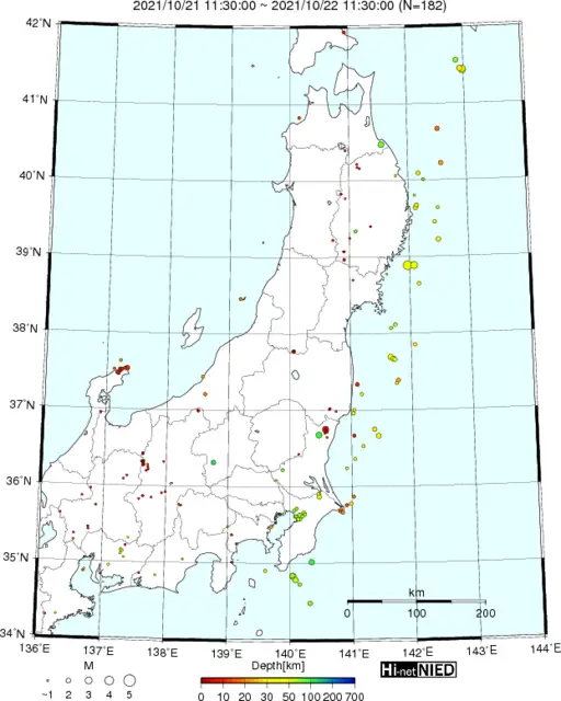 ●Hi-net日本地震分布と気象庁・・・hi-netの小笠原のデータは掲載日がずれて反映されるようです(翌々日に掲載)。掲載されないものもあるようなので気象庁の画像も付けます