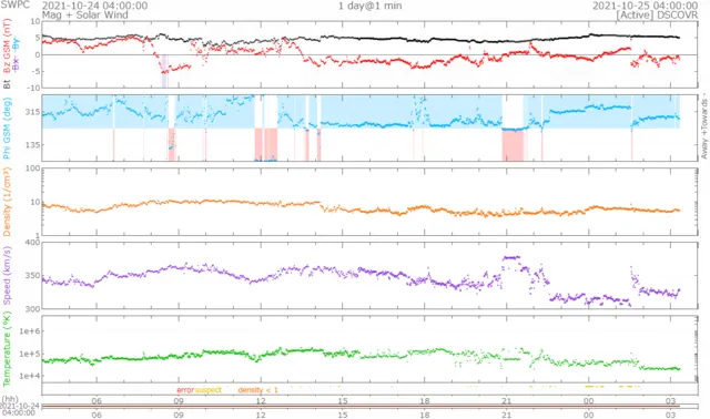 一時380km/s前後まで上がり310km/s前後まで下がりましたが現在320km/s前後で推移しています