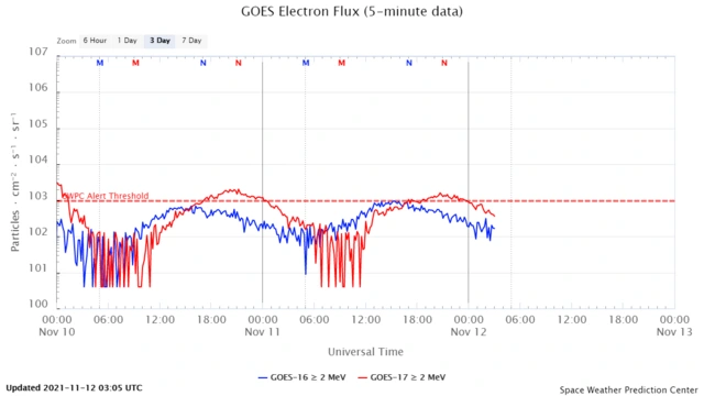 spaceweather.comのMクラスのフレア予測は1%になりました