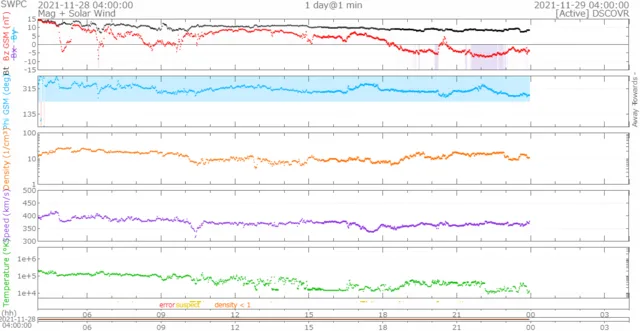 一時410km/s前後まで上がりましたが現在370km/s前後で推移しています