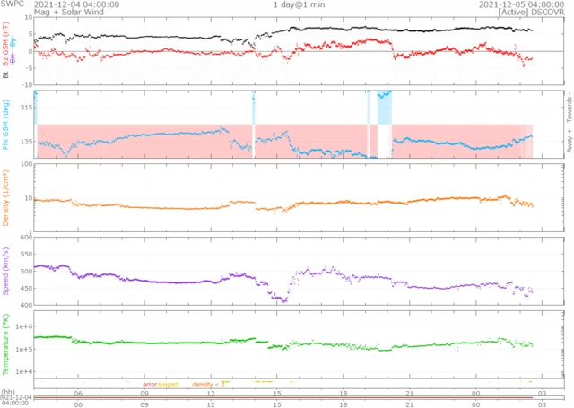 一時400km/s前後まで下がりましたが500km/s前後まで上がり、その後下がって現在450km/s前後で推移しています