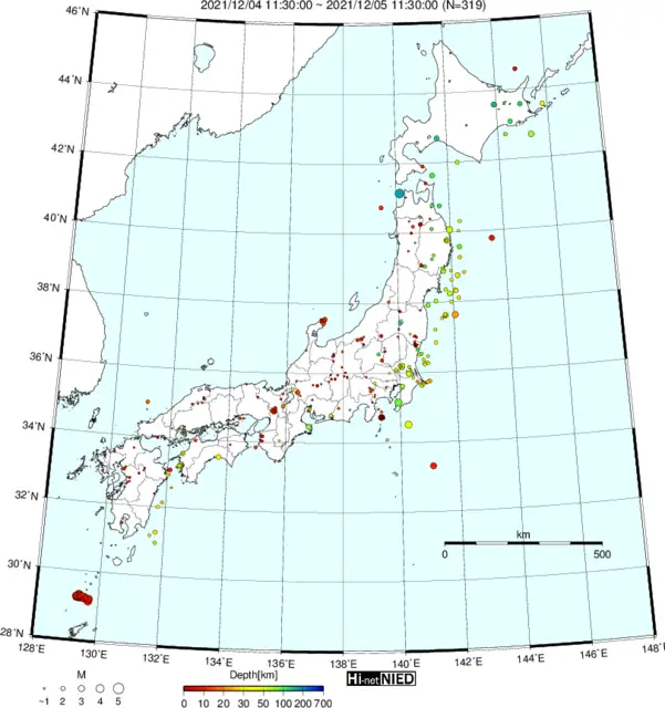 ●Hi-net日本地震分布と気象庁・・・hi-netの小笠原のデータは掲載日がずれて反映されるようです(翌々日に掲載)。掲載されないものもあるようなので気象庁の画像も付けます