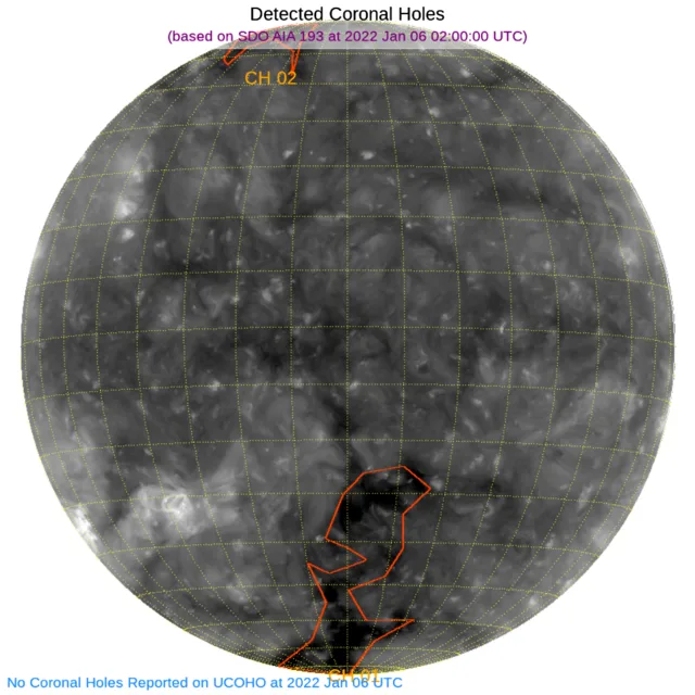 現時点で地球正面の黒点群はありません。←黒点番号が振られていない活動領域でもフレアは発生しますので、あくまで目安として捉えてください。