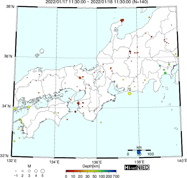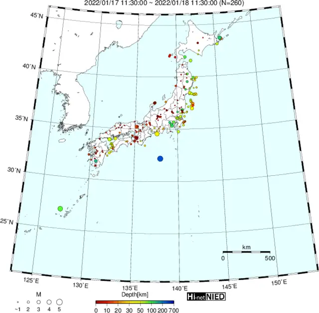 ●Hi-net日本地震分布と気象庁・・・hi-netの小笠原のデータは掲載日がずれて反映されるようです(翌々日に掲載)。掲載されないものもあるようなので気象庁の画像も付けます