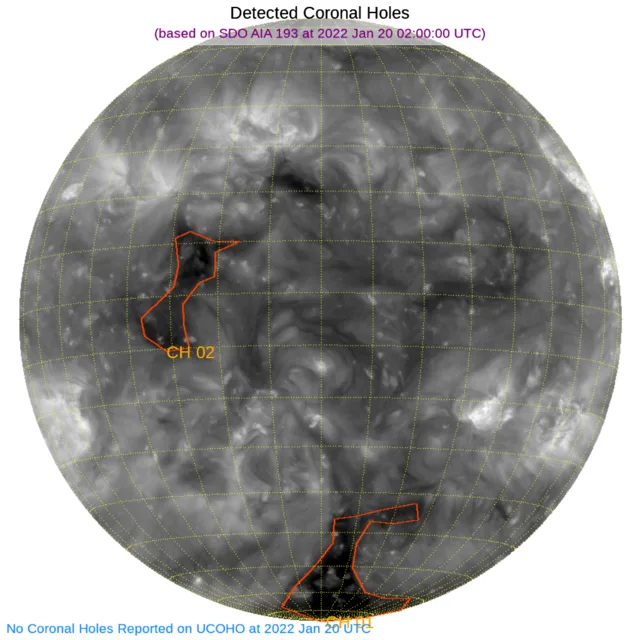 現時点で地球正面の黒点群はありません。←黒点番号が振られていない活動領域でもフレアは発生しますので、あくまで目安として捉えてください。