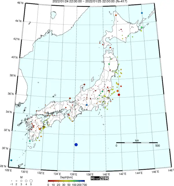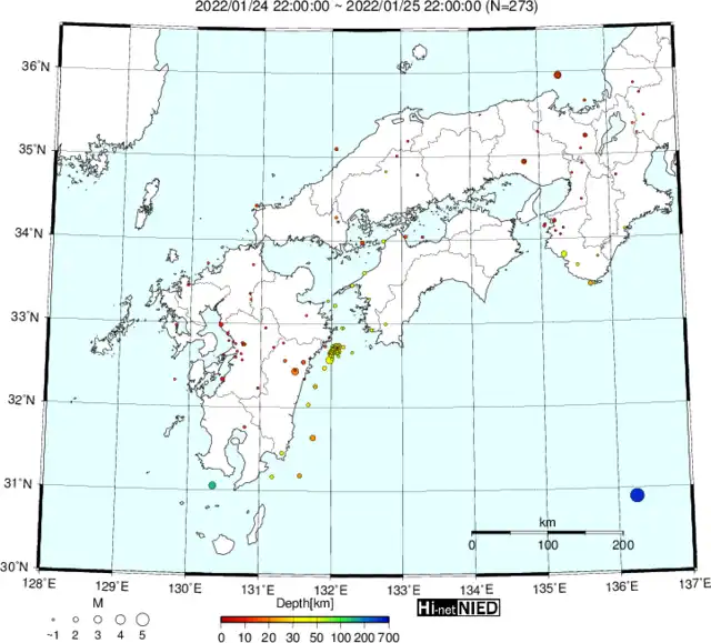 ●Hi-net日本地震分布と気象庁・・・hi-netの小笠原のデータは掲載日がずれて反映されるようです(翌々日に掲載)。掲載されないものもあるようなので気象庁の画像も付けます
