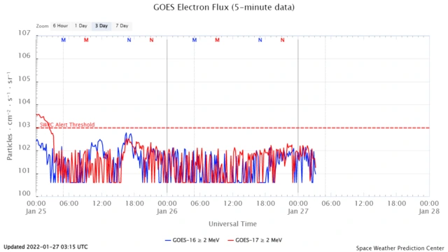 spaseweather.comのMクラスのフレア予測は10%に上がりました