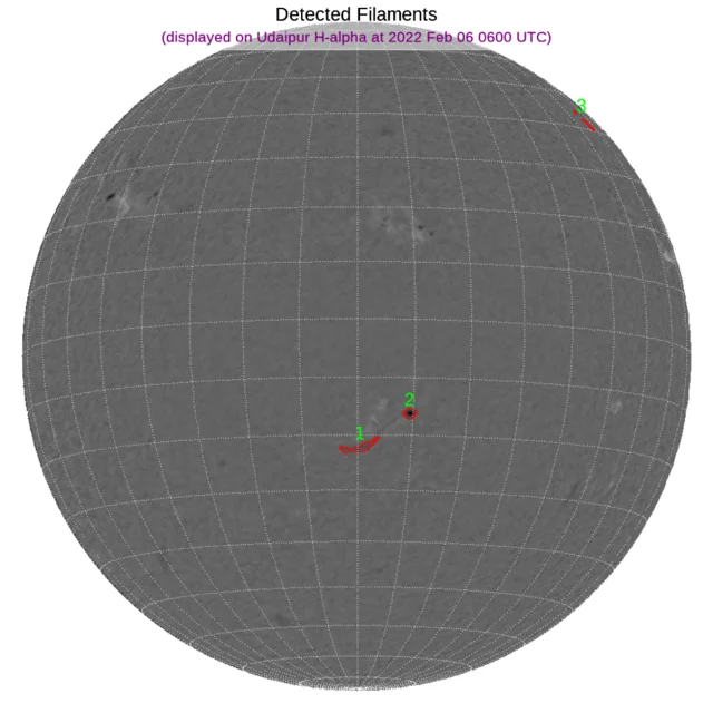 ※フィラメント:南半球中心付近、西寄りと北半球西端に小さなフィラメントがあります