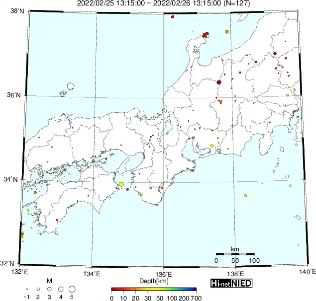 ●Hi-net日本地震分布と気象庁・・・hi-netの小笠原のデータは掲載日がずれて反映されるようです(翌々日に掲載)。掲載されないものもあるようなので気象庁の画像も付けます