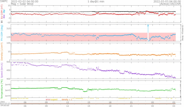 510km/s前後で推移していましたが徐々に下がり、現在400km/s前後で推移しています