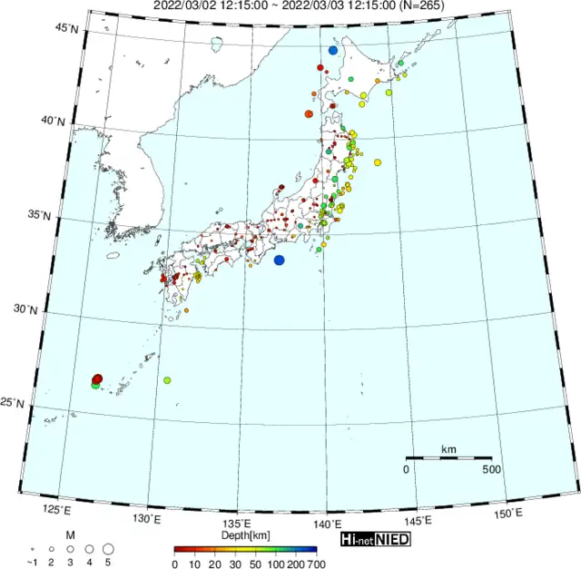 ●Hi-net日本地震分布と気象庁・・・hi-netの小笠原のデータは掲載日がずれて反映されるようです(翌々日に掲載)。掲載されないものもあるようなので気象庁の画像も付けます