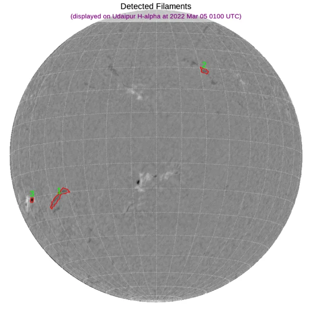 ※フィラメント:南半球東端と北半球西側にフィラメントがあります