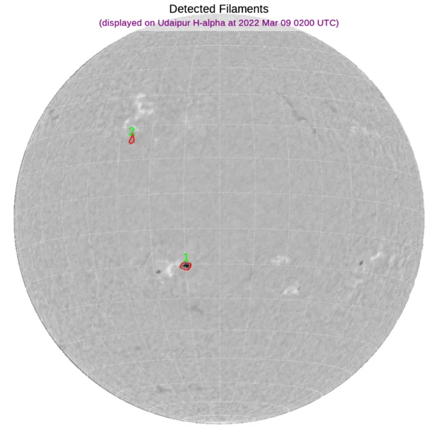 ※フィラメント:北半球東側と南半球東寄りにフィラメントがあります