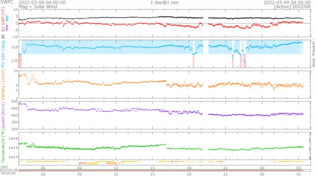 490km/s前後で推移していましたが少し下がり、現在420km/s前後で推移しています