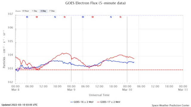 spaseweather.comのMクラスのフレア予測は10%に下がりました