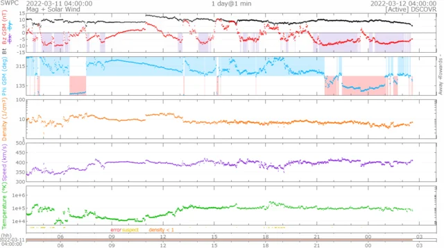 340km/s前後で推移していましたが徐々に上がり、現在410km/s前後で推移しています