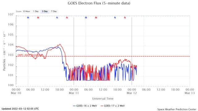 spaseweather.comのMクラスのフレア予測は15%のままです
