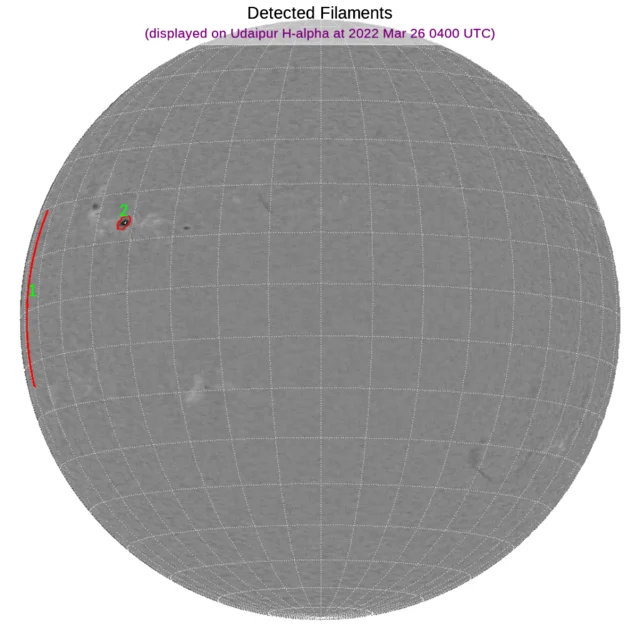 ※フィラメント:赤道付近東端と北半球東側にフィラメントがあります