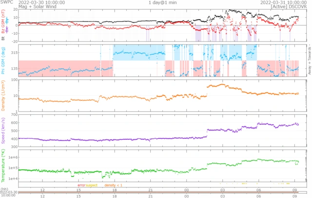 410km/s前後で推移しましたが段階的に上がり、現在600km/s前後で推移しています。