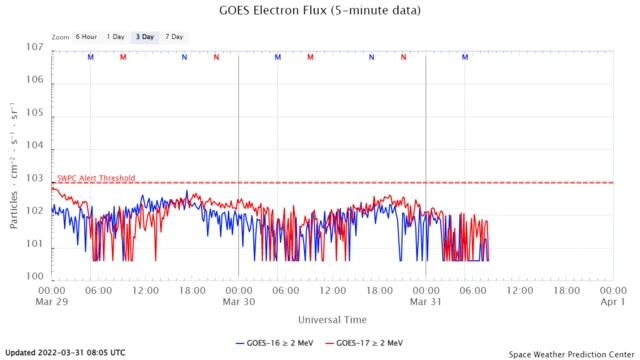 spaseweather.comのMクラスのフレア予測は50%のまま。Xクラスの予想も10%のままです