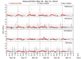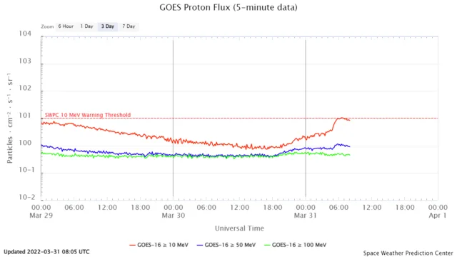 2975が活発で、X1.3の大規模太陽フレアを発生させました。これに伴いCMEが発生していてProtonも再び上昇に転じました。