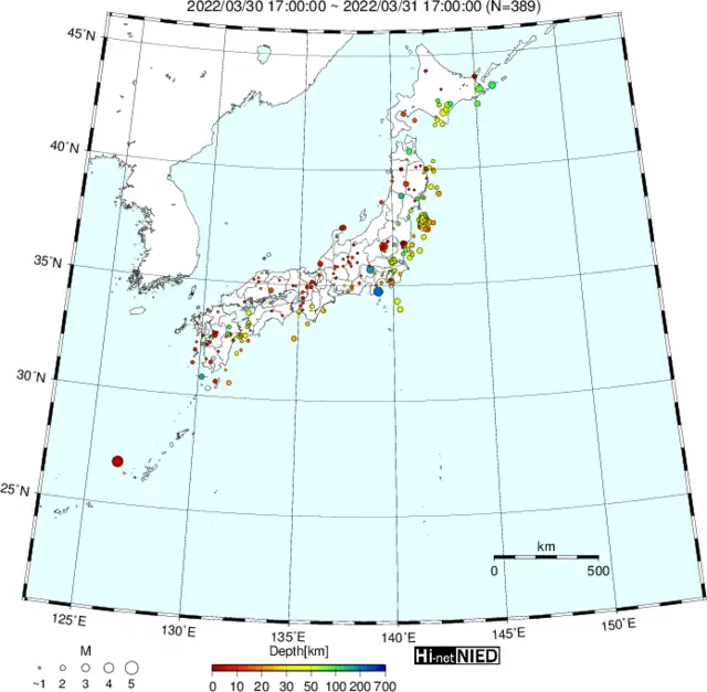 ●Hi-net日本地震分布と気象庁・・・hi-netの小笠原のデータは掲載日がずれて反映されるようです(翌々日に掲載)。掲載されないものもあるようなので気象庁の画像も付けます