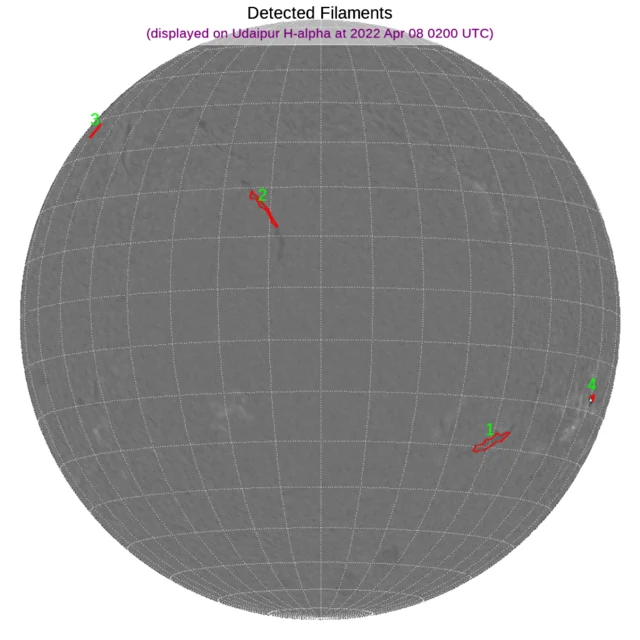 ※フィラメント:北半球東寄りと東端、南半球西端と西側にフィラメントがあります