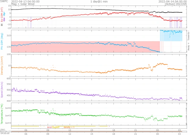 500km/s前後で推移していましたが徐々に下がり、現在410km/s前後で推移しています