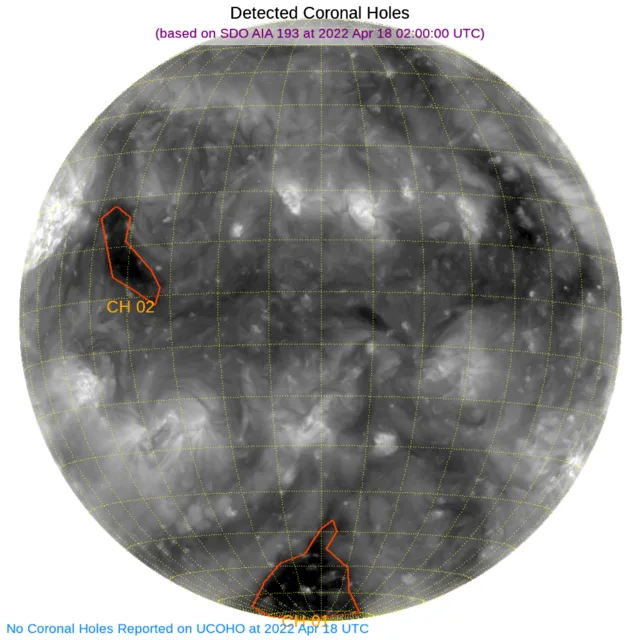南の極と北半球東端にコロナホールがあります